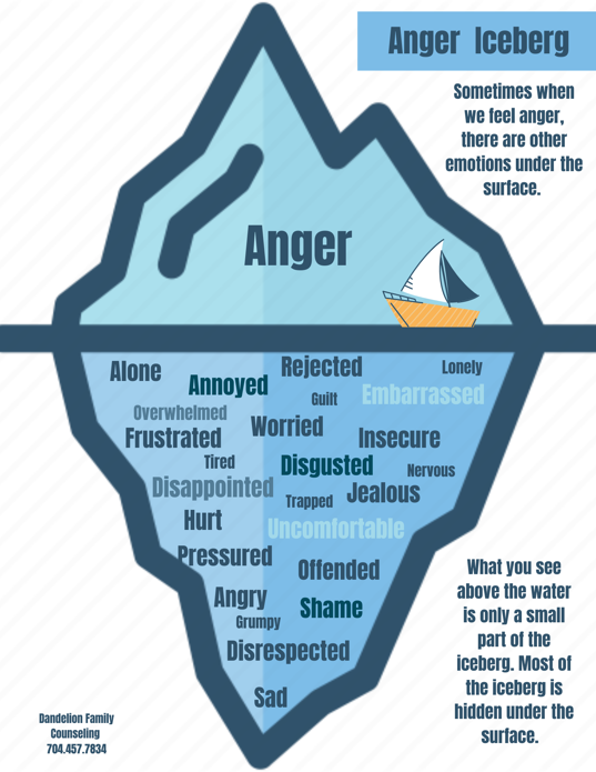 That’s where the Anger Iceberg comes in. It’s a tool we use in therapy to help children and parents understand what’s really going on underneath the surface.
